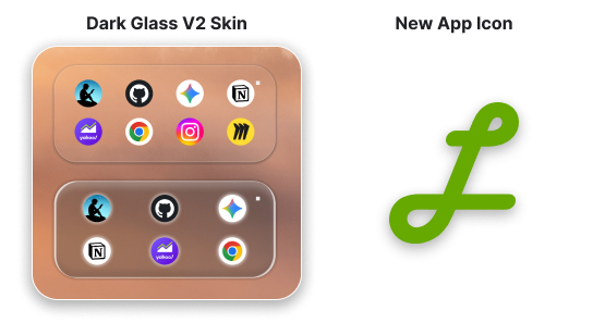 This release introduces a new app icon for Launchy Widget, along with an updated version of the Dark Glass skin which supports rounded corners.